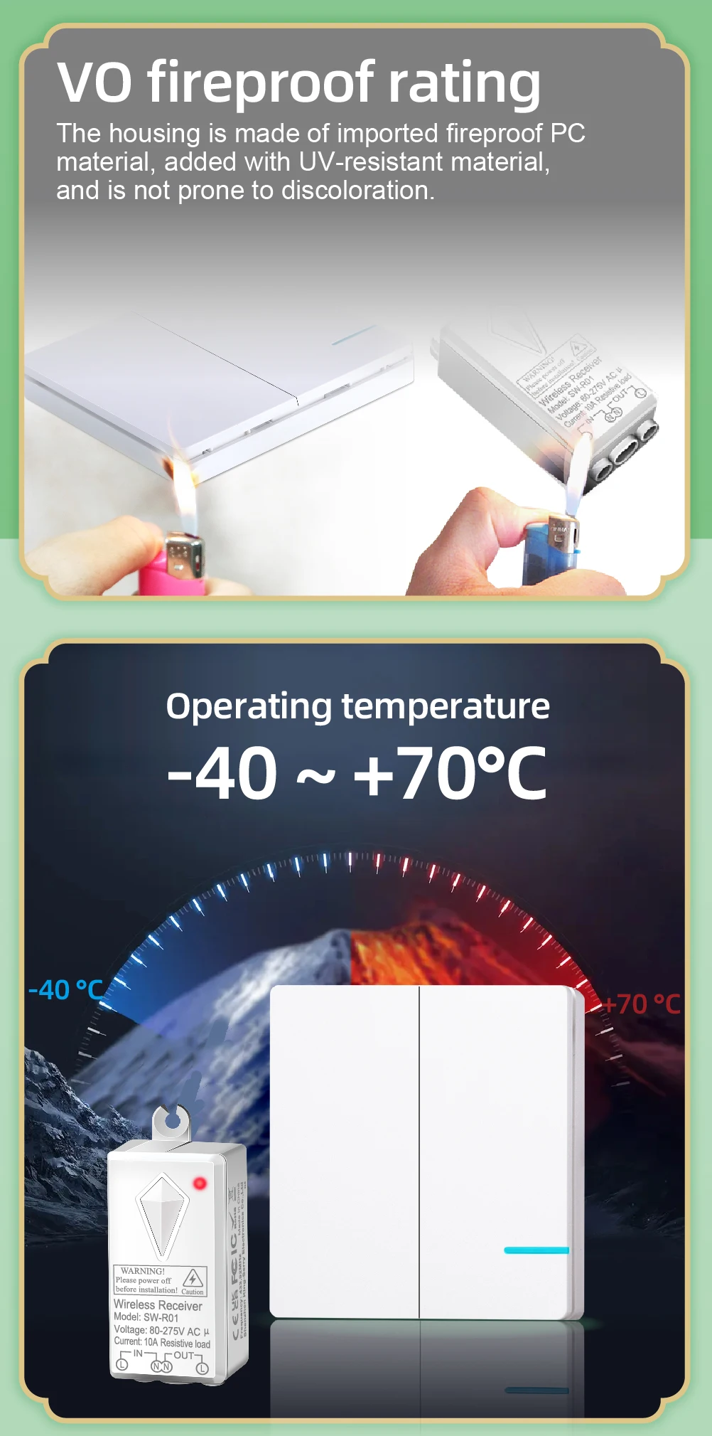 - Darbo temperatūra -40~70